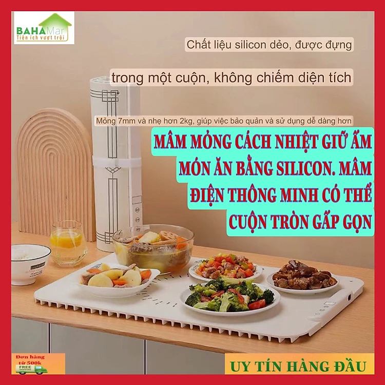 MÂM MỎNG CÁCH NHIỆT GIỮ ẤM MÓN ĂN BẰNG SILICON. MÂM ĐIỆN THÔNG MINH CÓ THỂ CUỘN TRÒN GẤP GỌN "BAHAMAR" Dùng hâm nóng món ăn, ủ ấm sữa, giữ ấm trà, rã đông thực phẩm, sấy khô