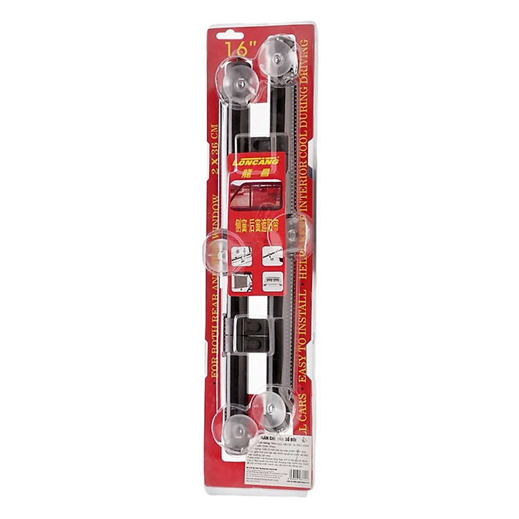 Gắn 2 nút cao su vào phần trên của màn, gắn nút còn lại vào kính xe phía dưới và kéo màn xuống cài vào.