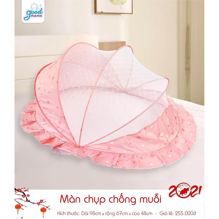 Màn chụp chống muỗi cho bé, vải mịn trơn mềm mại, thông thoáng