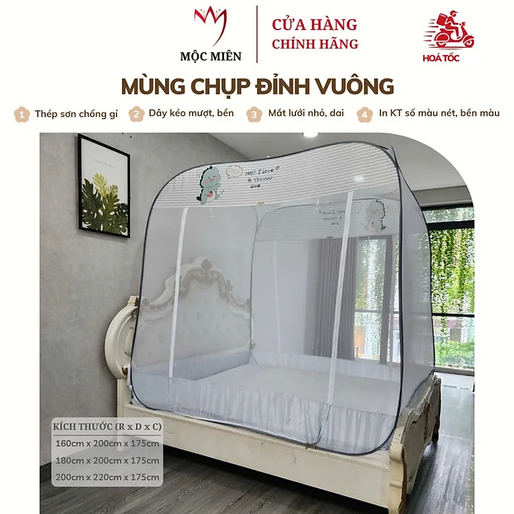 Màn Chụp Đỉnh Vuông Cao Cấp Mộc Miên - Kích Thước 1,6mx2m ( Hình thật )