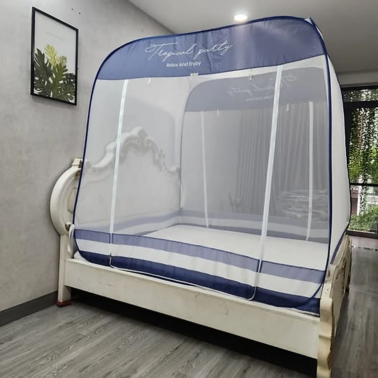 Màn Chụp ,Mùng Chụp Cao Cấp Mộc Miên Đỉnh Vuông - Kích Thước 1,6mx2m ( Xanh Xám 3 Đường Kẻ )