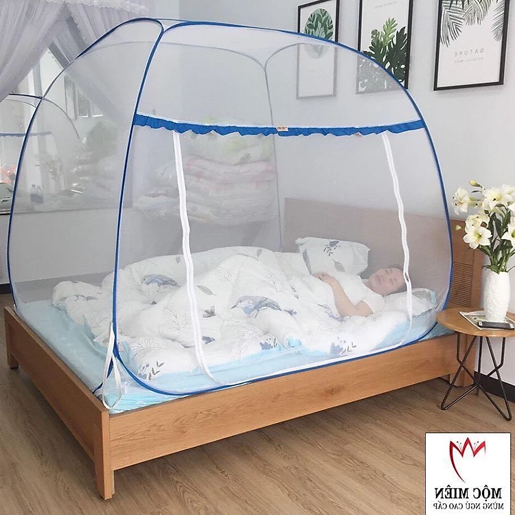 Màn Chụp , Mùng Chụp Đỉnh Rộng Cao Cấp Mộc Miên - Mẫu Không Viền Chân Hoạ Tiết ( Hà Nội )