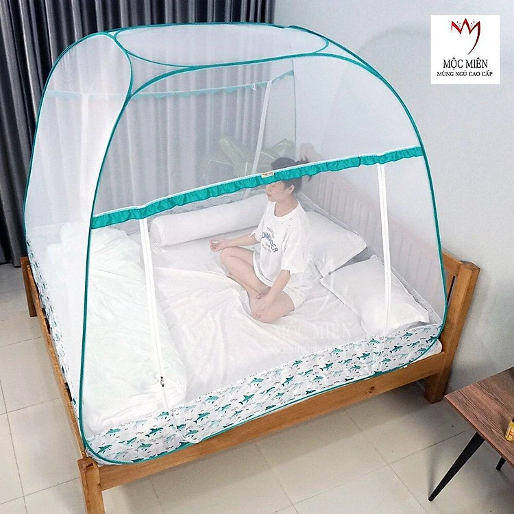 Màn Chụp , Mùng Chụp Đỉnh Rộng Cao Cấp Mộc Miên - Mẫu Xanh Cá Mập 2 Cửa ( Hà Nội )