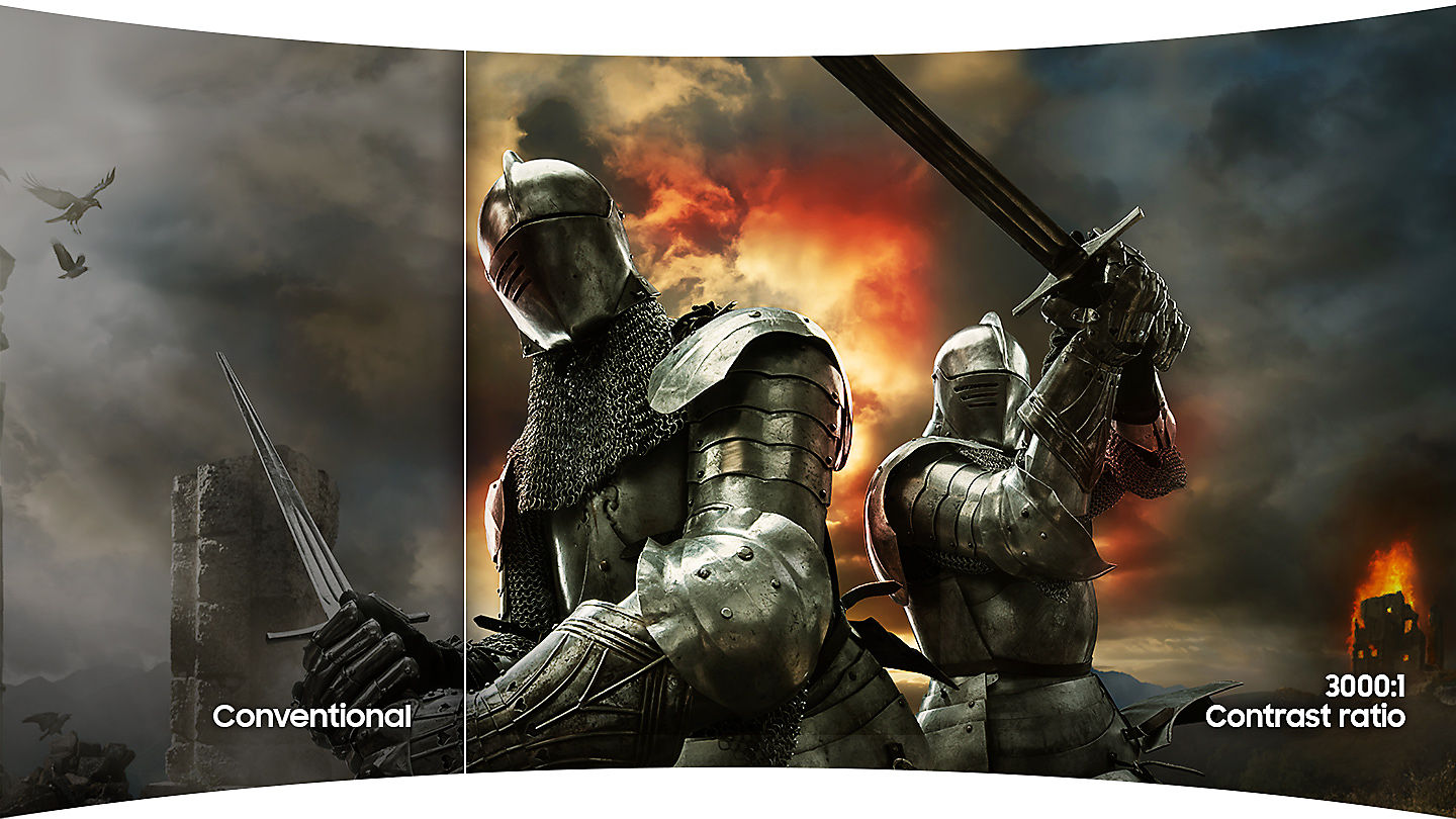 Công nghệ tấm nền VA của Samsung mang đến tỷ lệ tương phản 3000:1 cho sắc đen sâu thẳm hơn, sắc trắng tinh khiết và màu sắc sống động hơn bao giờ hết. Đồng thời, công nghệ còn giảm tối thiểu sự rò rỉ ánh sáng từ các góc màn hình, mang đến sắc đen đồng đều trên mọi khung hình.
