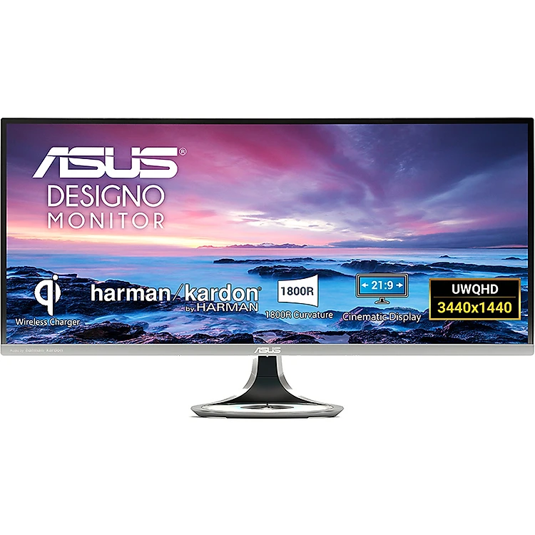 Màn Hình Cong Thiết Kế Đồ Họa Asus Designo MX34VQ 34 inch 2K Ultra Wide (2048 x 1080) 4ms 100Hz Tích Hợp Sạc Không Dây Qi Loa Harman Kardon VA - Hàng Chính Hãng