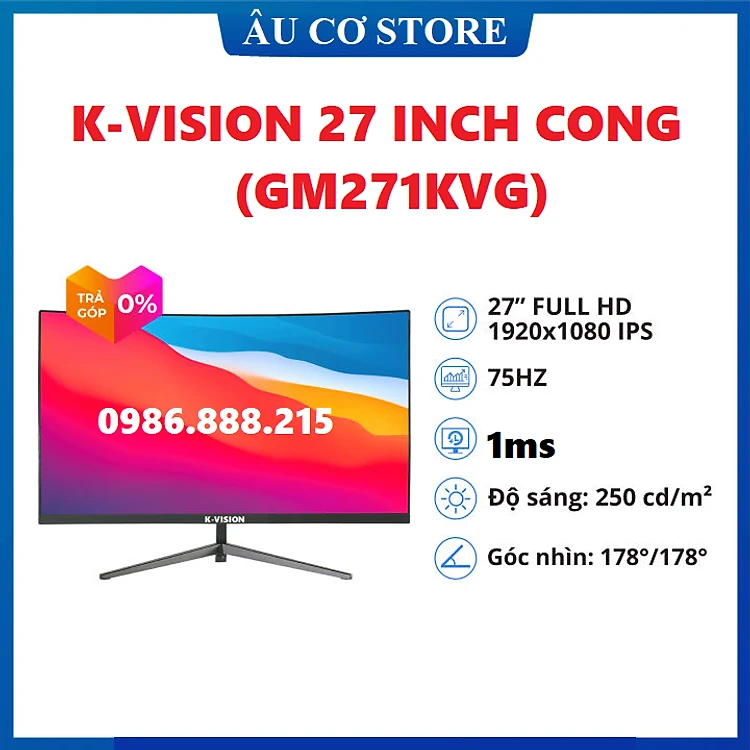 Màn hình K-Vision 27 inch cong IPS tràn viền 75Hz mới - HÀNG CHÍNH HÃNG