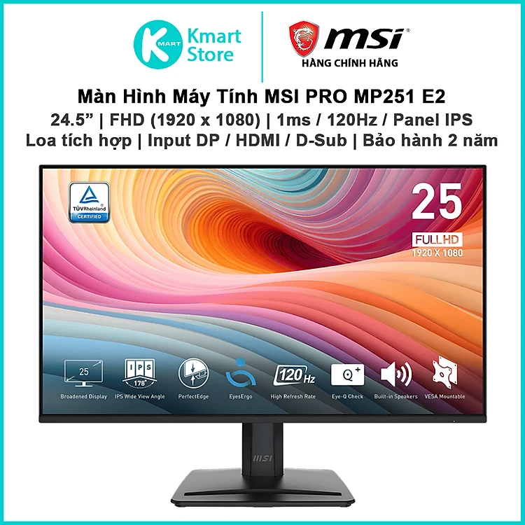 Màn hình máy tính MSI Pro MP251 E2 / MP251W E2 | 24.5" FHD 1920 x 1080 120Hz /1ms/ IPS | Loa tích hợp | DP/HDMI/VGA | Bảo hành 2 năm | Hàng Chính Hãng