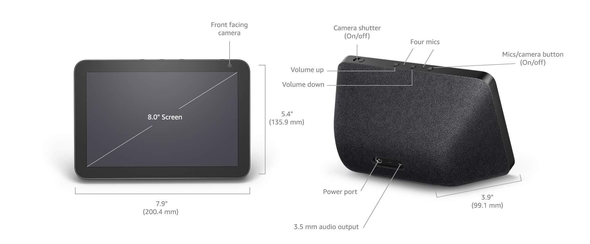 - Amazon Echo Show 8 sở hữu màn hình cảm ứng 8", độ phân giải HD 1280 x 800px