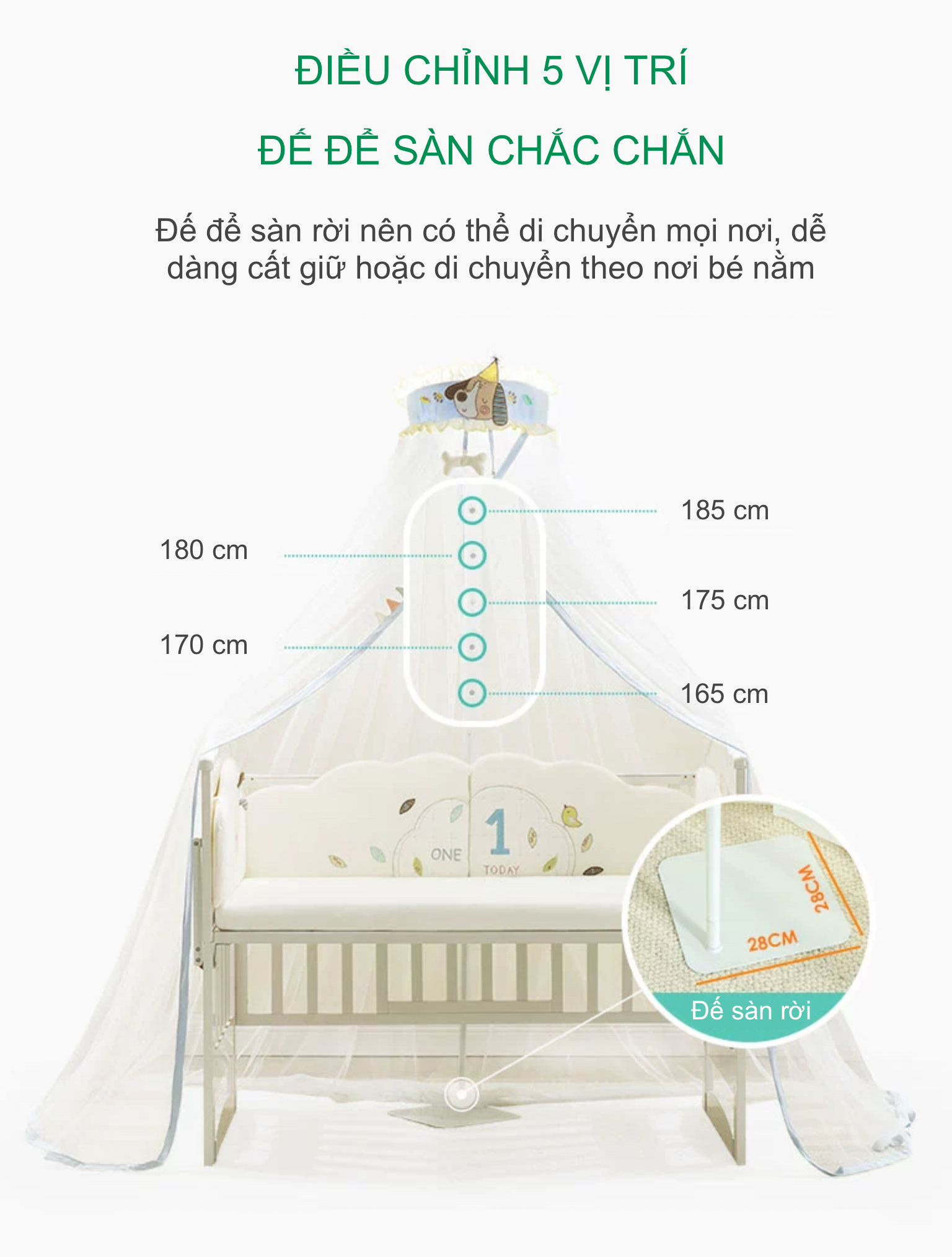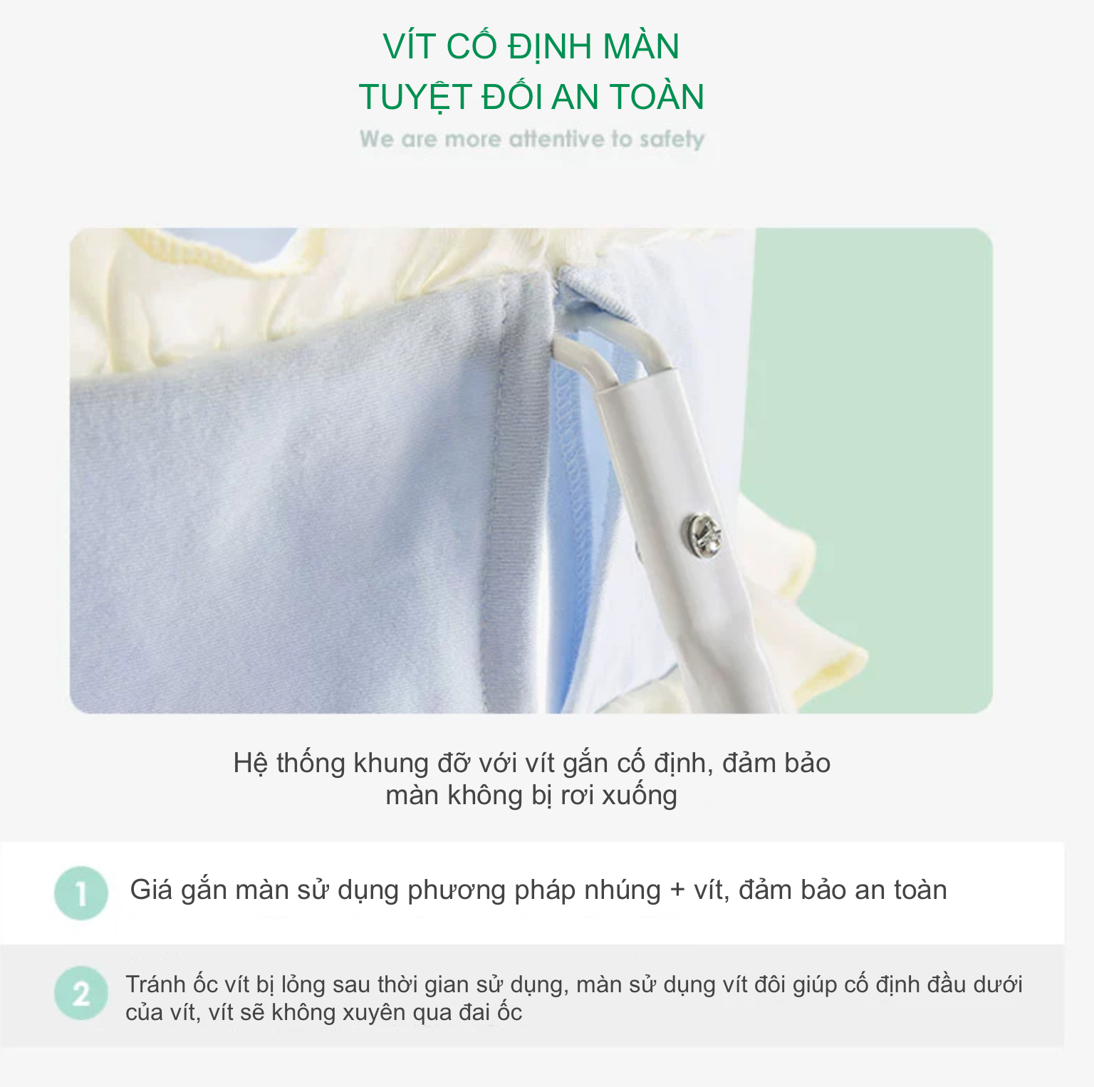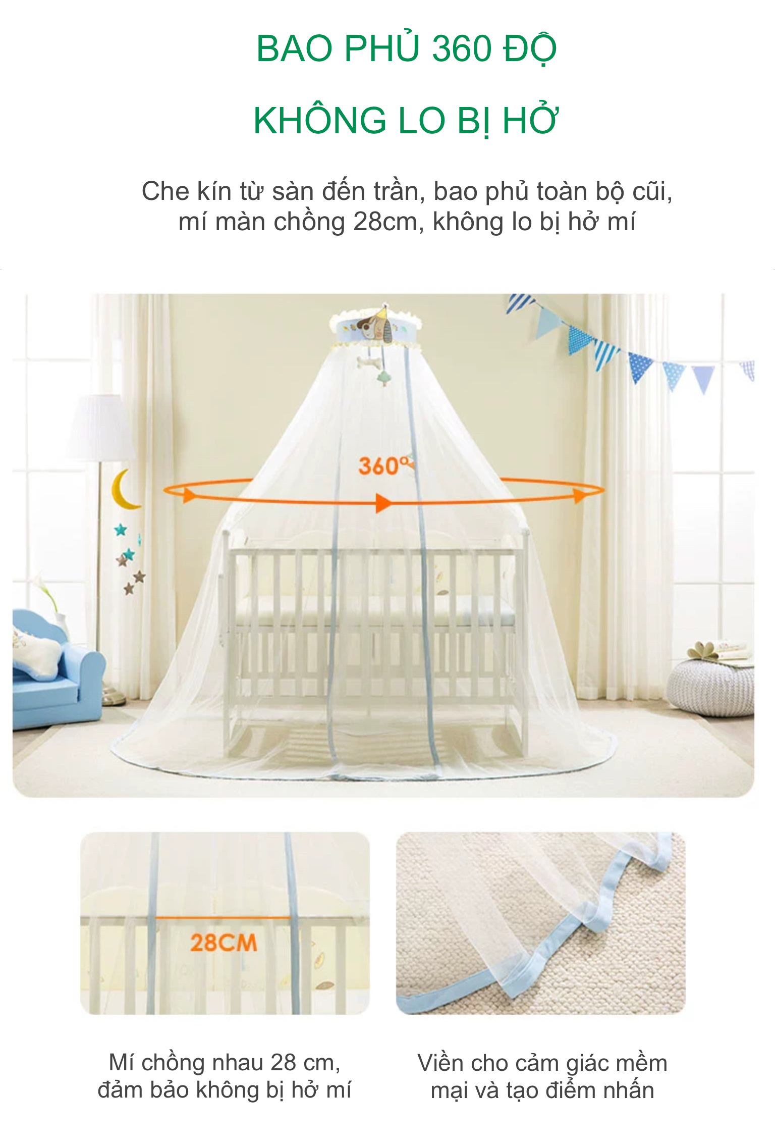 Màn Nằm Cũi Cho Bé - Bao Phủ Toàn Cũi, Điều Chỉnh Độ Cao, Dễ Dàng Di Chuyển