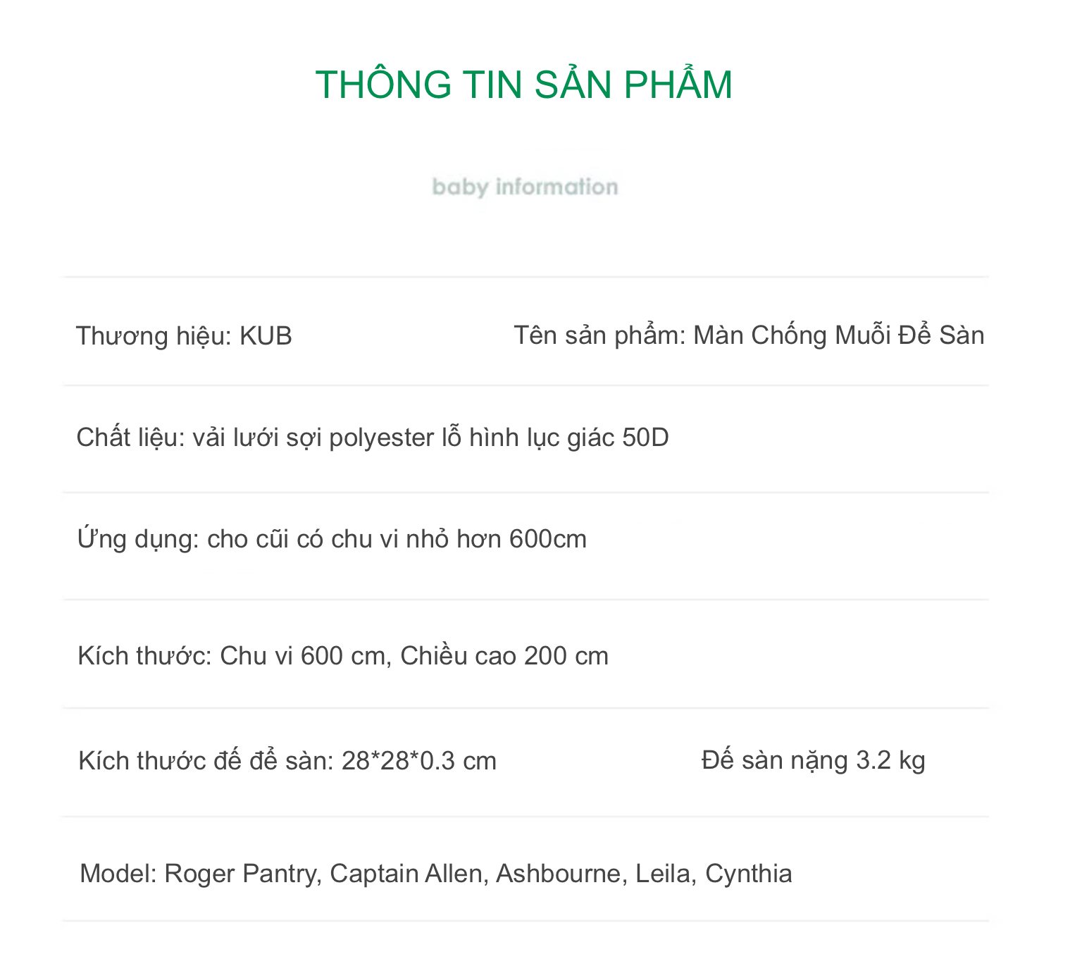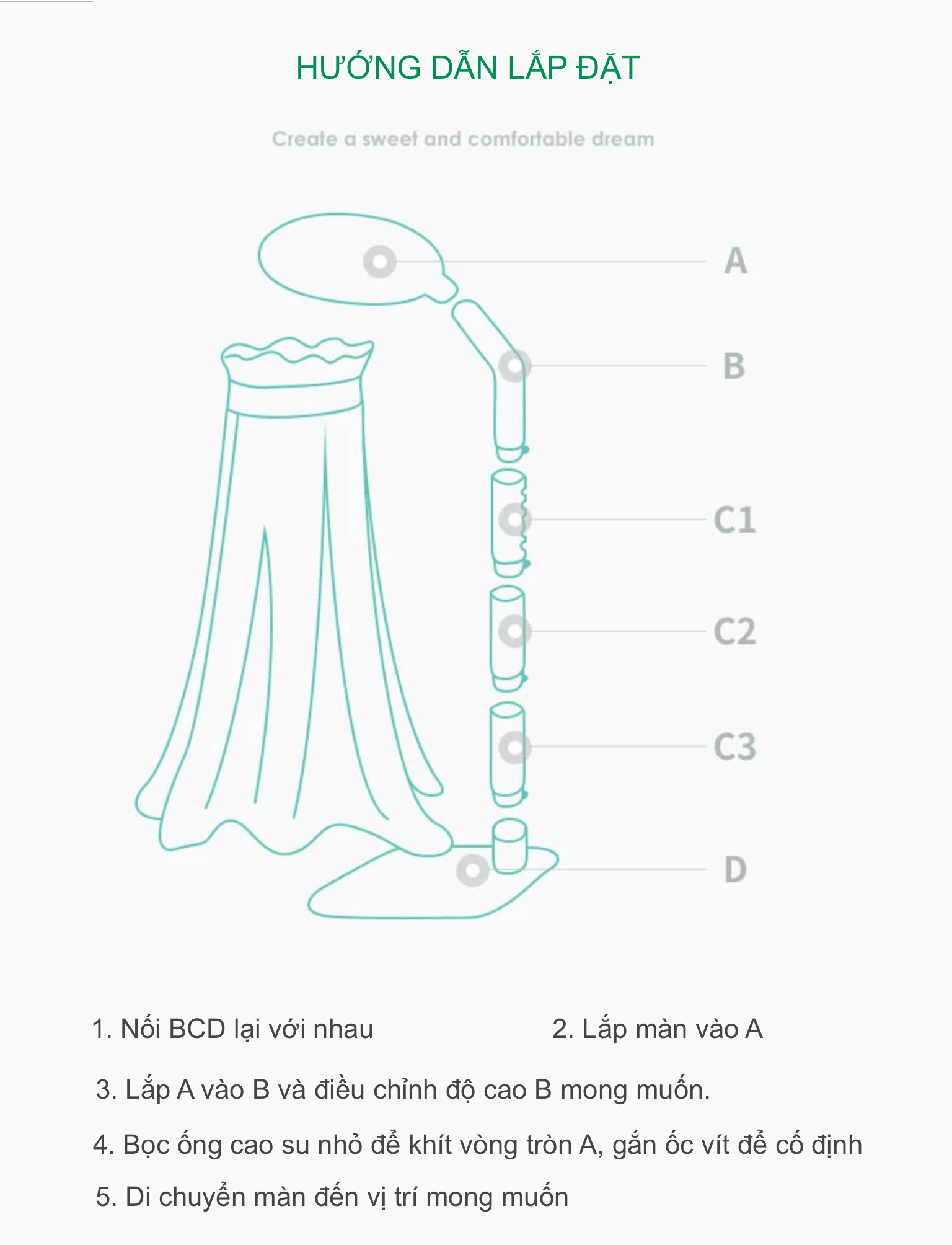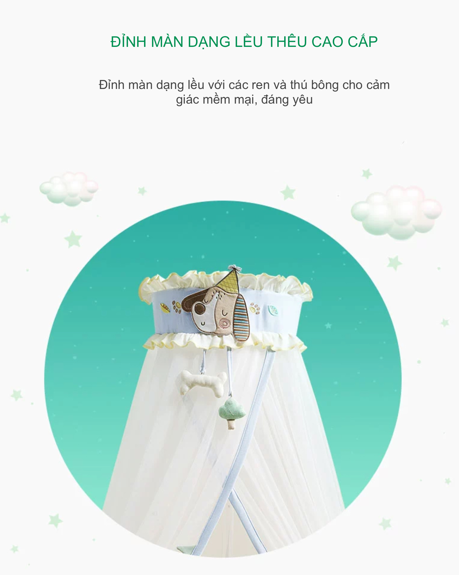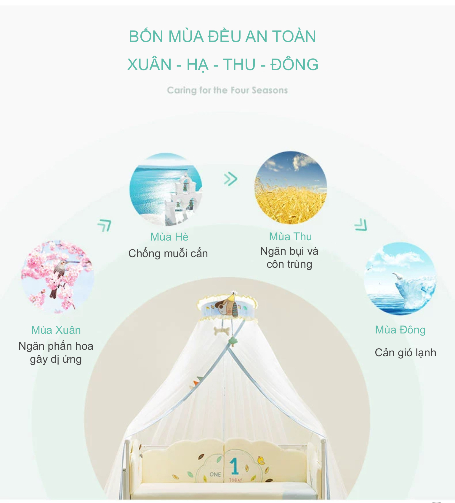 Màn Nằm Cũi Cho Bé - Bao Phủ Toàn Cũi, Điều Chỉnh Độ Cao, Dễ Dàng Di Chuyển