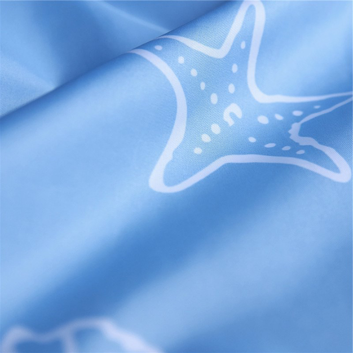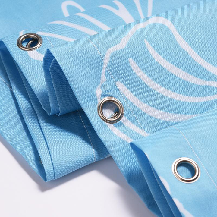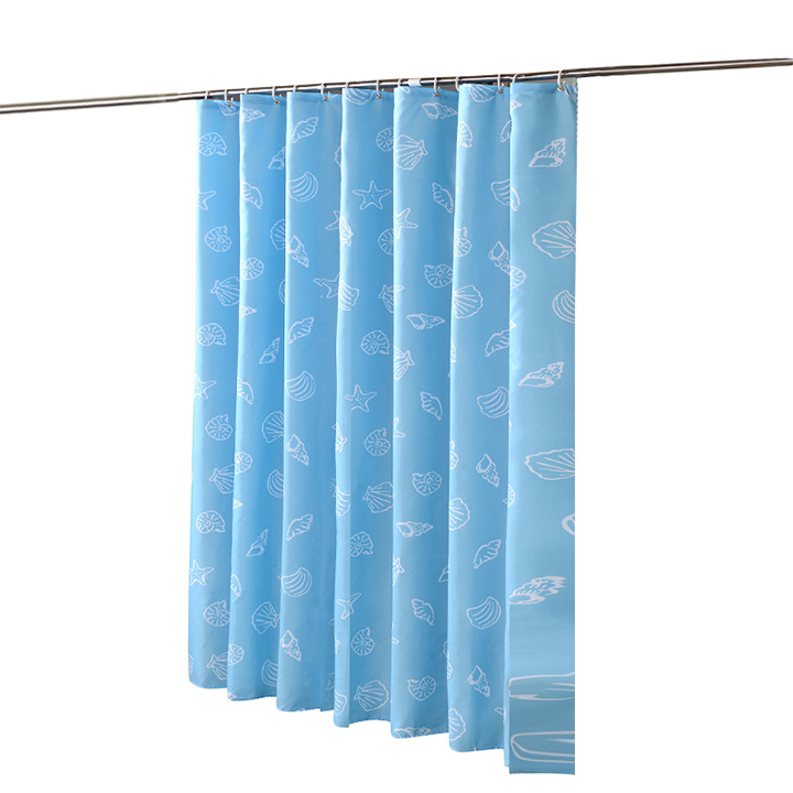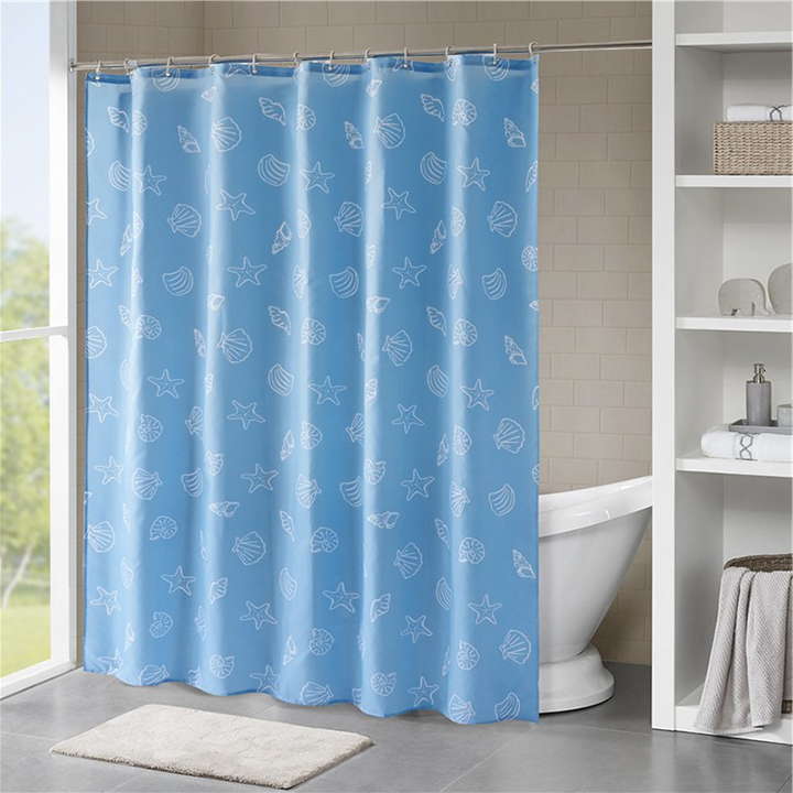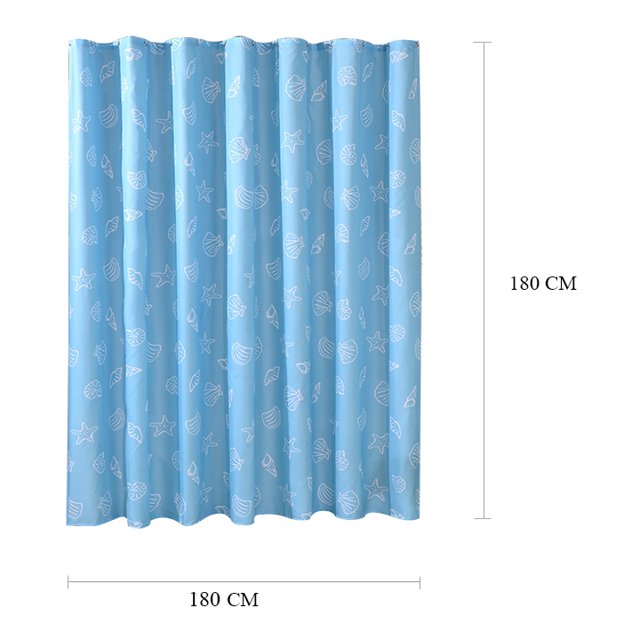 - Màn treo nhà tắm chống thấm họa tiết vỏ sò được làm từ chất liệu vải nilon dày dặn, che chắn tốt, chống thấm nước tuyệt đối, giảm mức độ văng nước gây ướt cả căn phòng, hạn chế trơn trượt, té ngã.