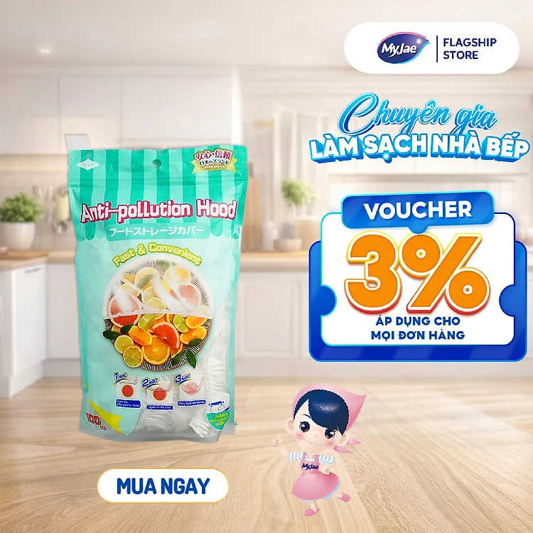 Màng Bọc Thực Phẩm PE Tái Sử Dụng Dạng Bo Chun MyJae, Màng Bọc Bảo Quản Thức Ăn (100 Cái/Gói)