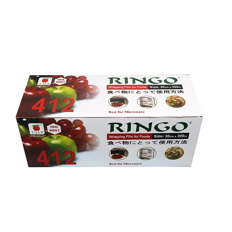 Màng bọc thực phẩm Ringo PVC cuộn lớn ST412/418/612, dùng được trong tủ lạnh, lò vi sóng, có lưỡi cắt