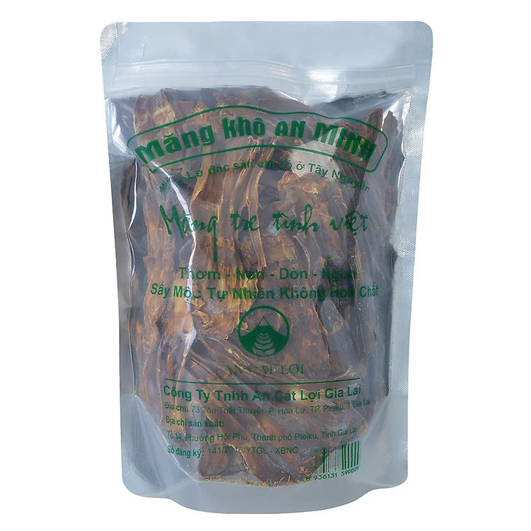 - Măng Khô An Minh (200g) được làm từ Măng Le, với vị ngọt, bùi, không đắng chát và đặc ruột, đây được xem là loại ngon nhất trong các loại măng rừng có trong tự nhiên.