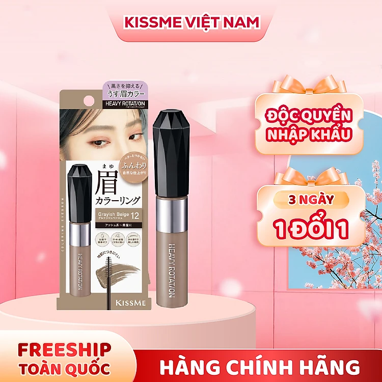 Mascara Chải Đổi Màu Lông Mày Chống Trôi Siêu Bền Màu Xám Be Kissme Heavy Rotation Coloring Eyebrow Ex #12 8 G