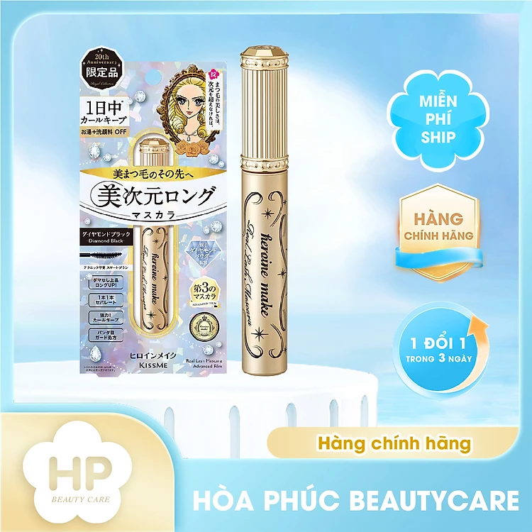 Mascara Màng Film Cải Tiến Siêu Chống Trôi Làm Cong Và Dài Mi ( Màu Đen Tuyền ) Phiên Bản Hoàng Gia Đặc Biệt Kissme Heroine Make Real Lash Mascara Advanced Film 6g