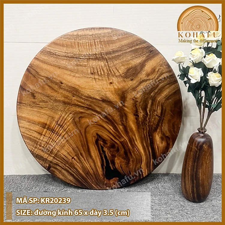 Mặt Bàn Tròn Gỗ Me Tây KOHAFU - Đường kính 65cm - Hàng Có Sẵn Y Hình