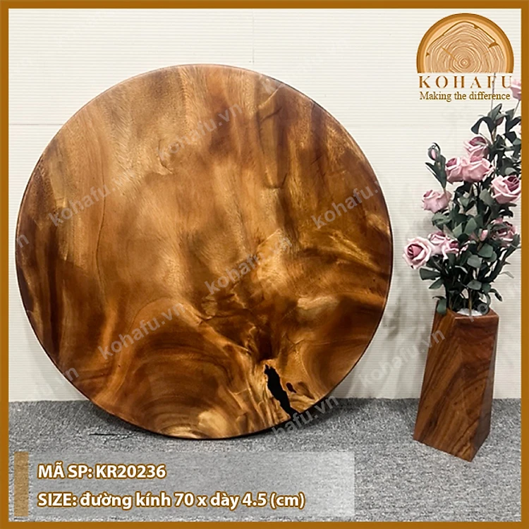 Mặt Bàn Tròn Gỗ Me Tây KOHAFU - Đường kính 70cm - Hàng Sẵn Thực Tế Y Hình