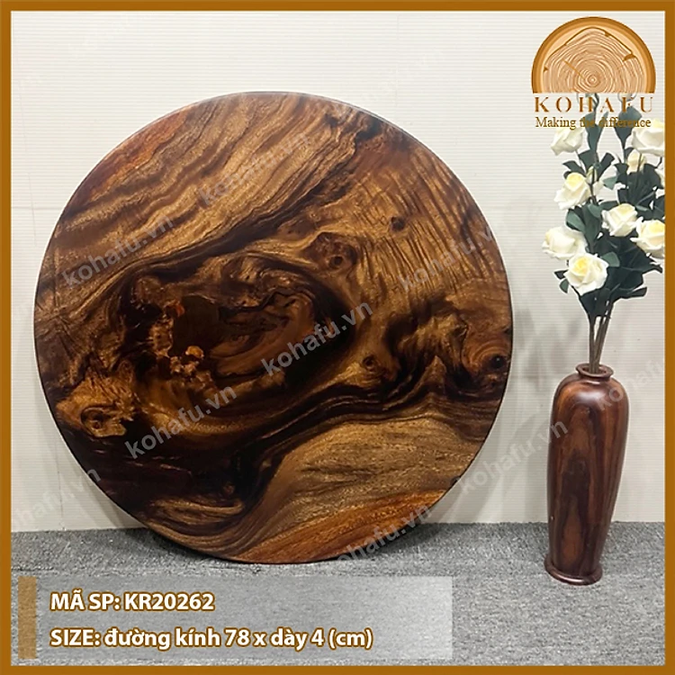 Mặt Bàn Tròn Gỗ Me Tây Nguyên Tấm KOHAFU Đường Kính 80cm - Mẫu Y Hình