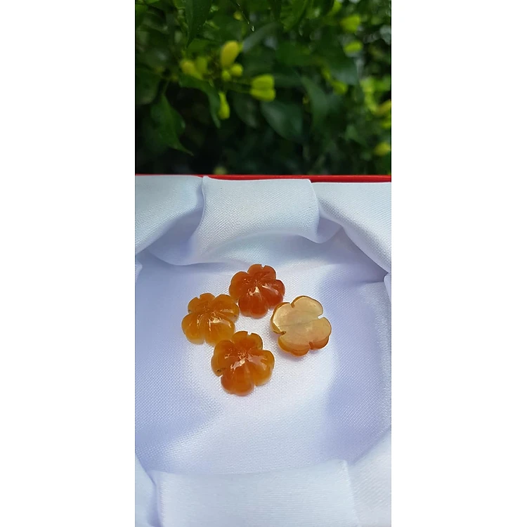 Mặt Bông Hoa cỏ 4 lá màu vàng cam nữ phối vòng tay,làm mặt nhẫn Chất liệu đá cẩm thạch size hạt 14mm x dầy 6mm Nữ về phối với vòng tay của mình đeo hay làm mặt nhẫn mặt dây chuyền đeo xinh ạ