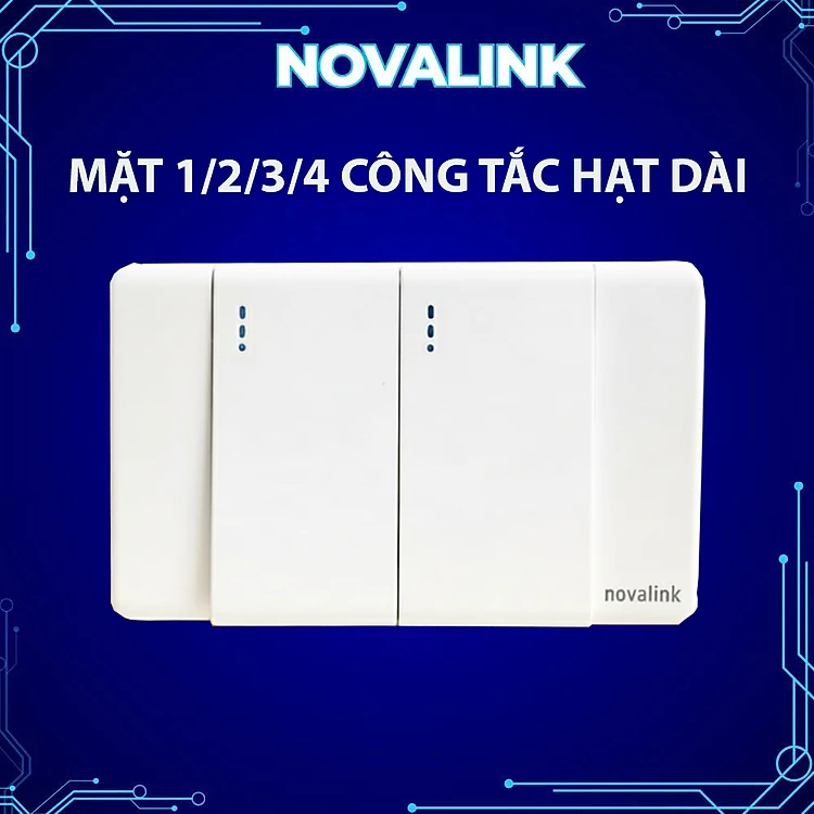 Mặt công tắc đôi nút nhấn tràn viền Novalink A6-03, trắng sứ cao cấp - Hàng nhập khẩu chính hãng