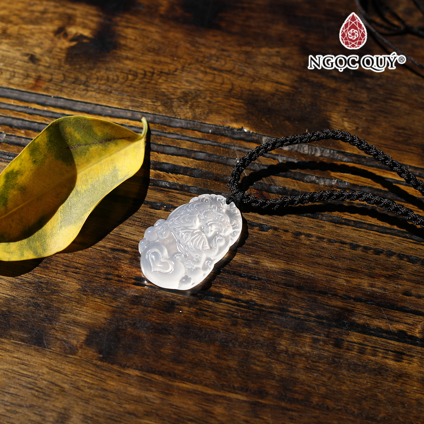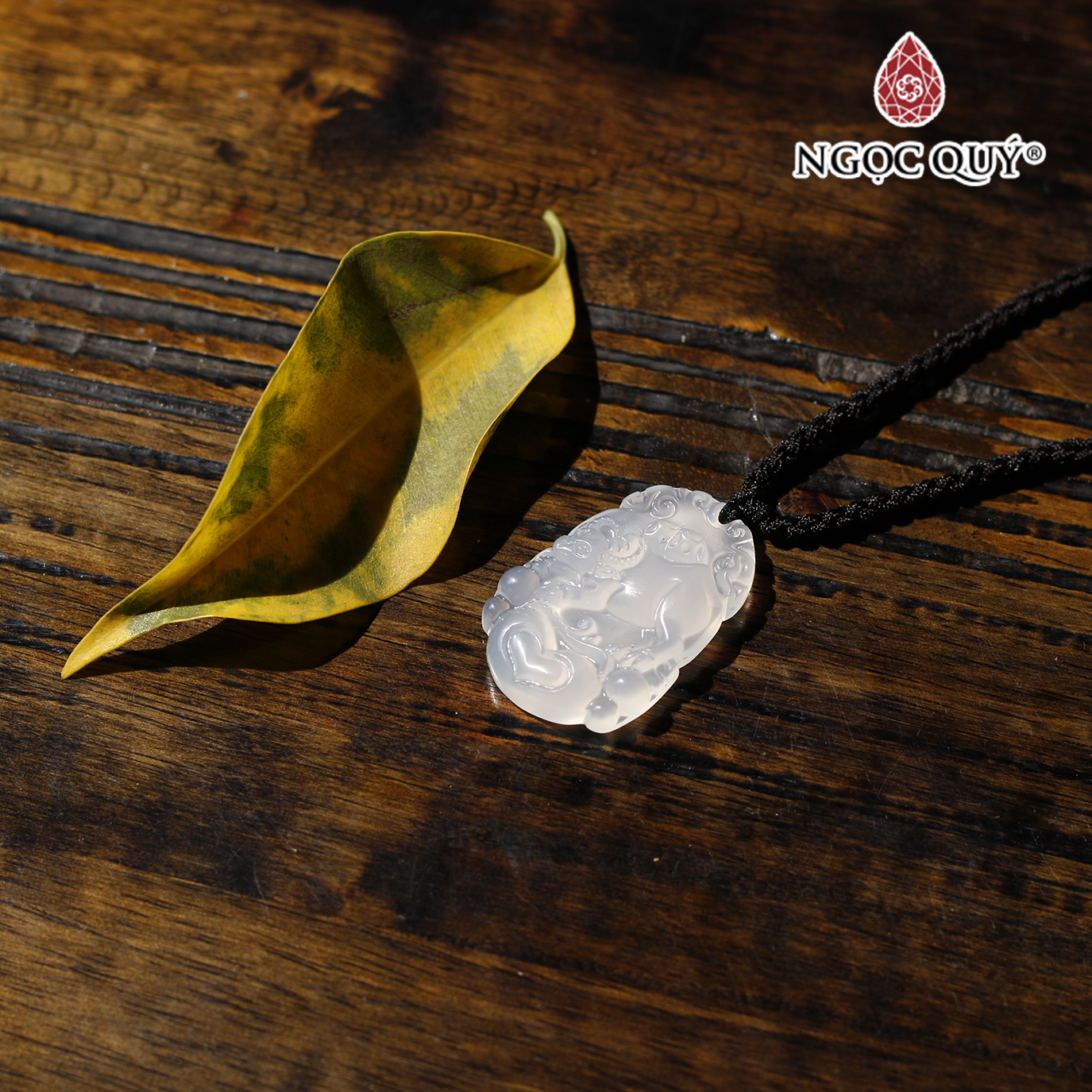 Mặt dây chuyền 12 con giáp đá mã não trắng 3.5x2.2cm mệnh thủy, kim - Ngọc Quý Gemstones