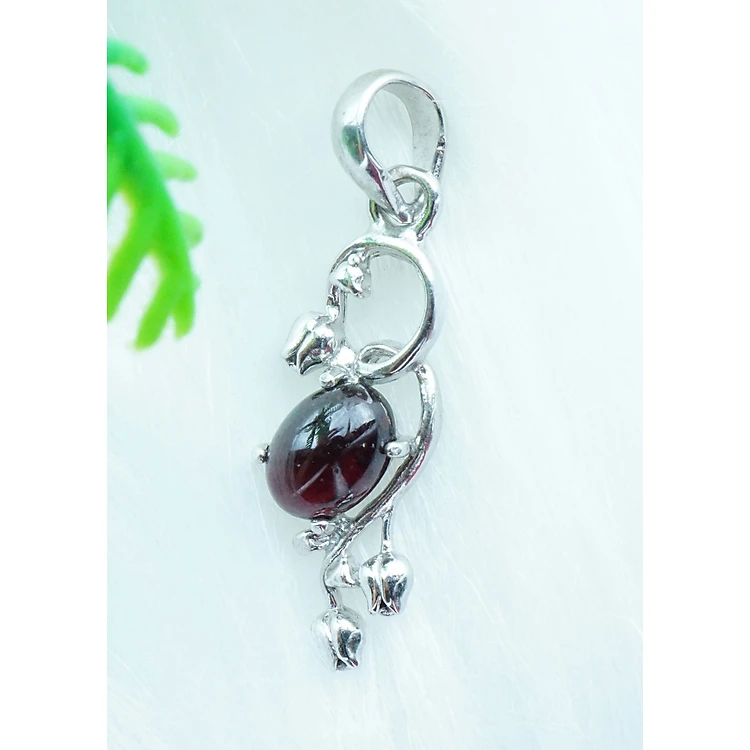 Mặt dây chuyền bạc 925 đính đá Garnet ngọc hồng lựu tự nhiên kiểu hoa tulip MDG6