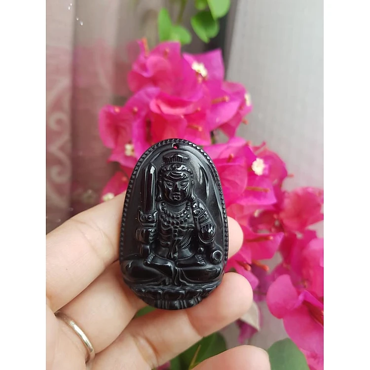 Mặt Dây Chuyền Bất Động Minh Vương Độ Mệnh Nam Tuổi DẬU Chất liệu đá mã não đen Hợp Nam mệnh Thủy, mệnh Mộc Size nam C53mm x N39mm x S11mm ạ