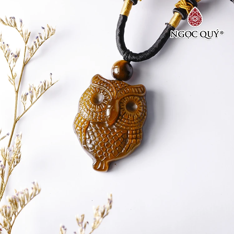 Mặt dây chuyền cú đá mắt hổ vàng nâu 36x26x11mm mệnh thổ kim - Ngọc Quý Gemstones