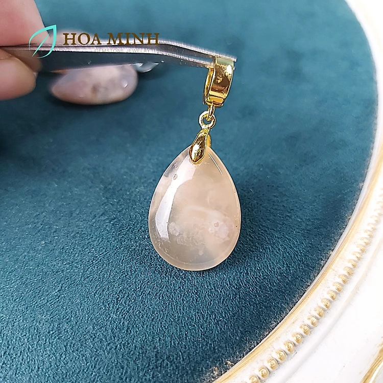 Mặt dây chuyền đá Mã Não hoa đào tự nhiên kiểu giọt nước 25x17.7mm, thời trang tài lộc không kén mệnh
