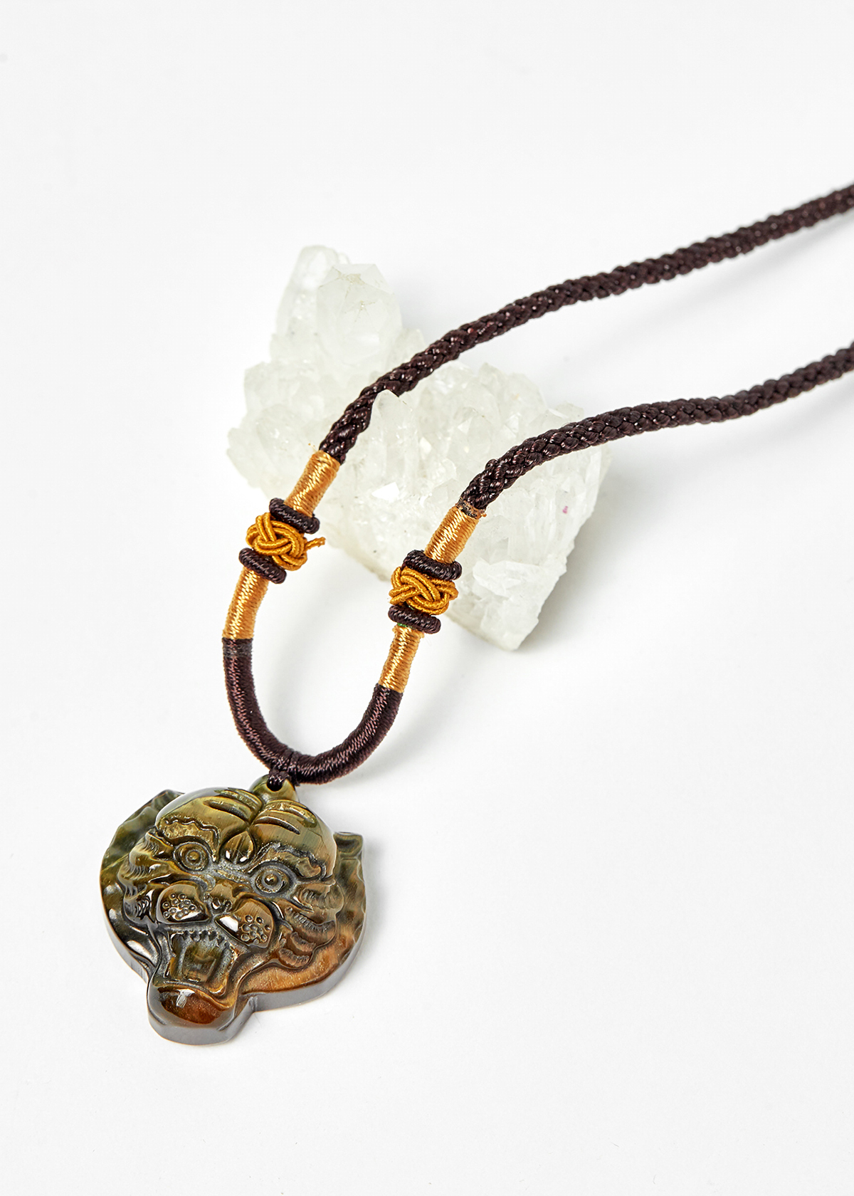 MẶT DÂY CHUYỀN ĐẦU HỔ ĐÁ THẠCH ANH MẮT HỔ XANH ĐEN: