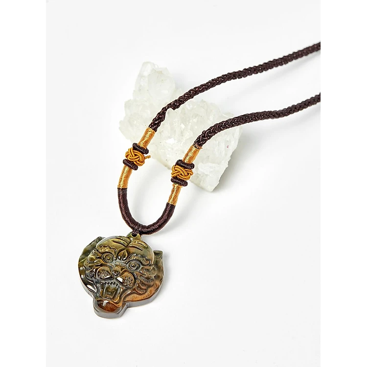 Mặt dây chuyền đầu hổ đá thạch anh mắt hổ xanh đen 32x30mm mệnh thủy, mộc - Ngọc Quý Gemstones