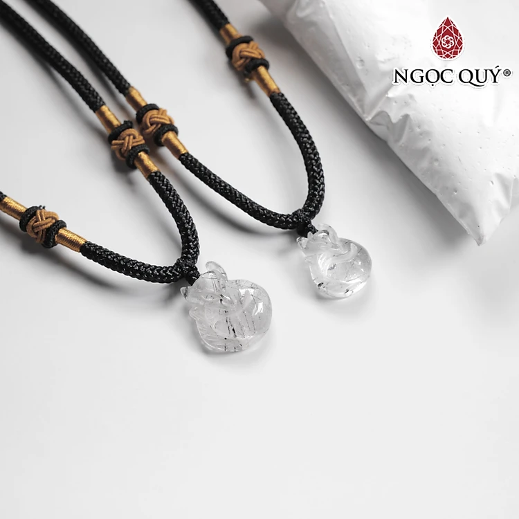 Mặt dây chuyền hồ ly đá thạch anh tóc đen 18x14mm mệnh thủy, mộc - Ngọc Quý Gemstones