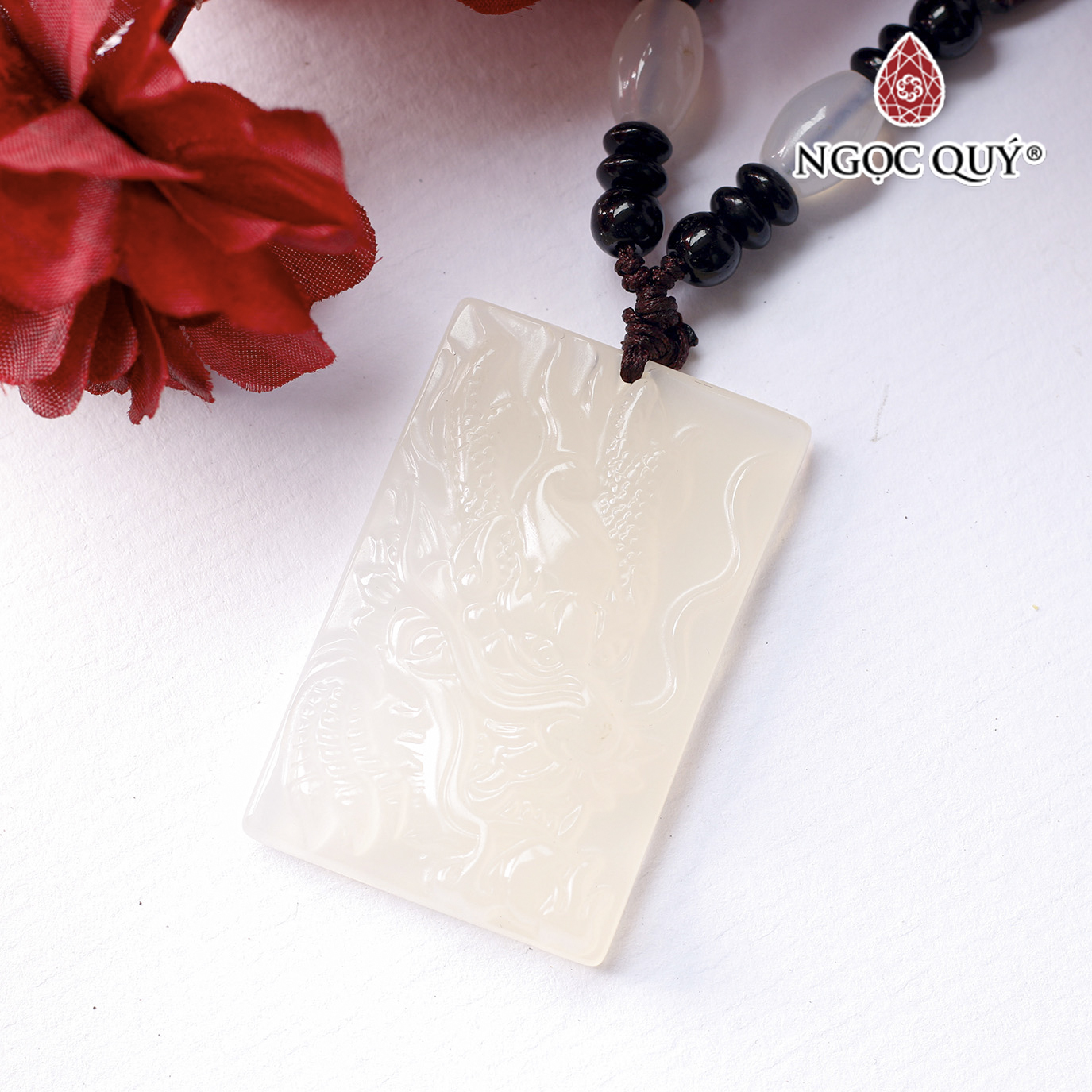 Mặt dây chuyền khắc hình rồng đá mã não 53x35x8mm - Ngọc Quý Gemstones