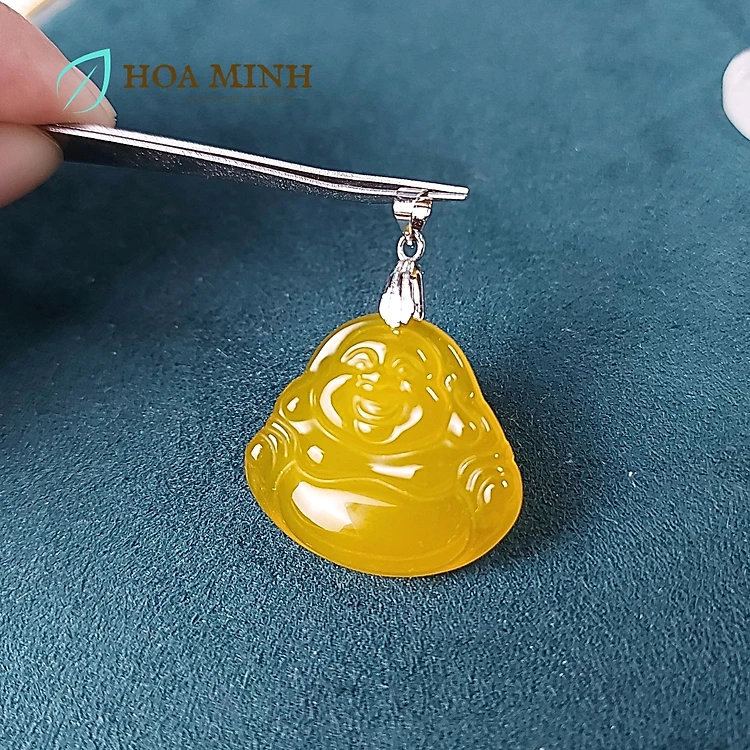Mặt dây chuyền kiểu ngài Di Lặc đá Mã Não A size 27x30mm hoan hỉ phong thuỷ tài lộc