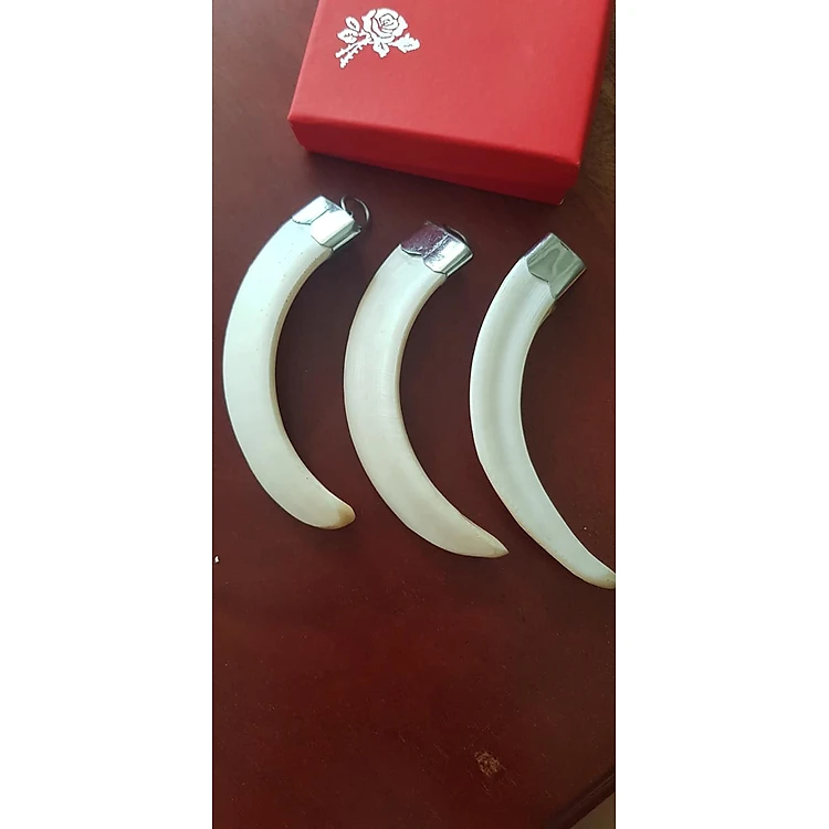 Mặt dây chuyền Nam Nanh Giả Ngà trơn hay gọi Xương mỹ nghệ trơn Mặt dây màu trắng trơn đã bọc khoen inox dài 98mm x ngang 12mm Nam đeo với sợi dây chuyền của mình đẹp ạ