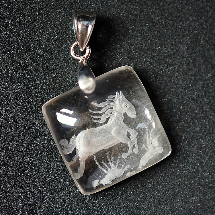 Mặt dây chuyền nam nữ thạch anh trắng tự nhiên - Con Ngựa (Tuổi Ngọ)