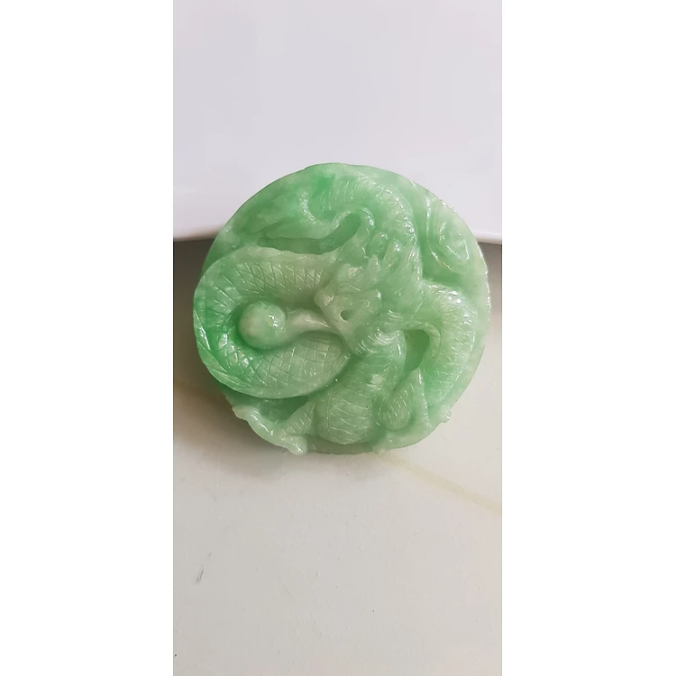 Mặt dây chuyền Nam to trạm rồng lượn nổi nhả ngọc đá ngọc cẩm thạch tự nhiên Size tròn to đường kính 53mm x dầy 6mm Màu xanh Ngọc Tươi bóng đẹp lắm luôn nam bọc vàng đeo với dây chuyền của mình thiệt đẹp lắm luôn nha ạ