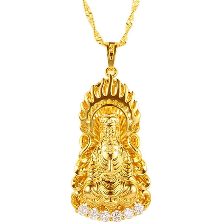 Mặt dây chuyền nữ mạ vàng không bị phai mầu, rụng đá tạc Quan Thế Âm Bồ Tát hiển linh MK257