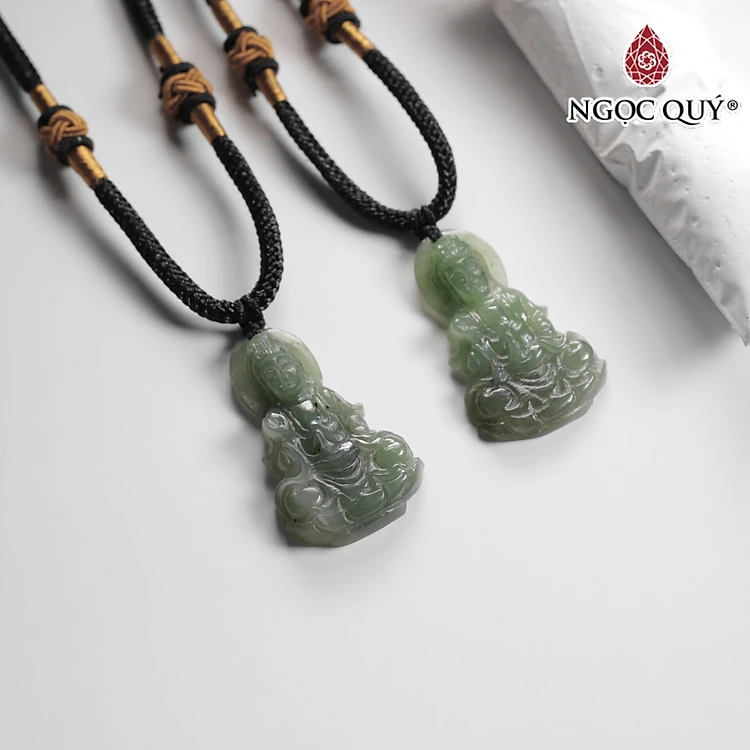 Mặt dây chuyền phật bà đá ngọc bích 35x22mm mệnh mộc, mệnh hỏa - Ngọc Quý Gemstones
