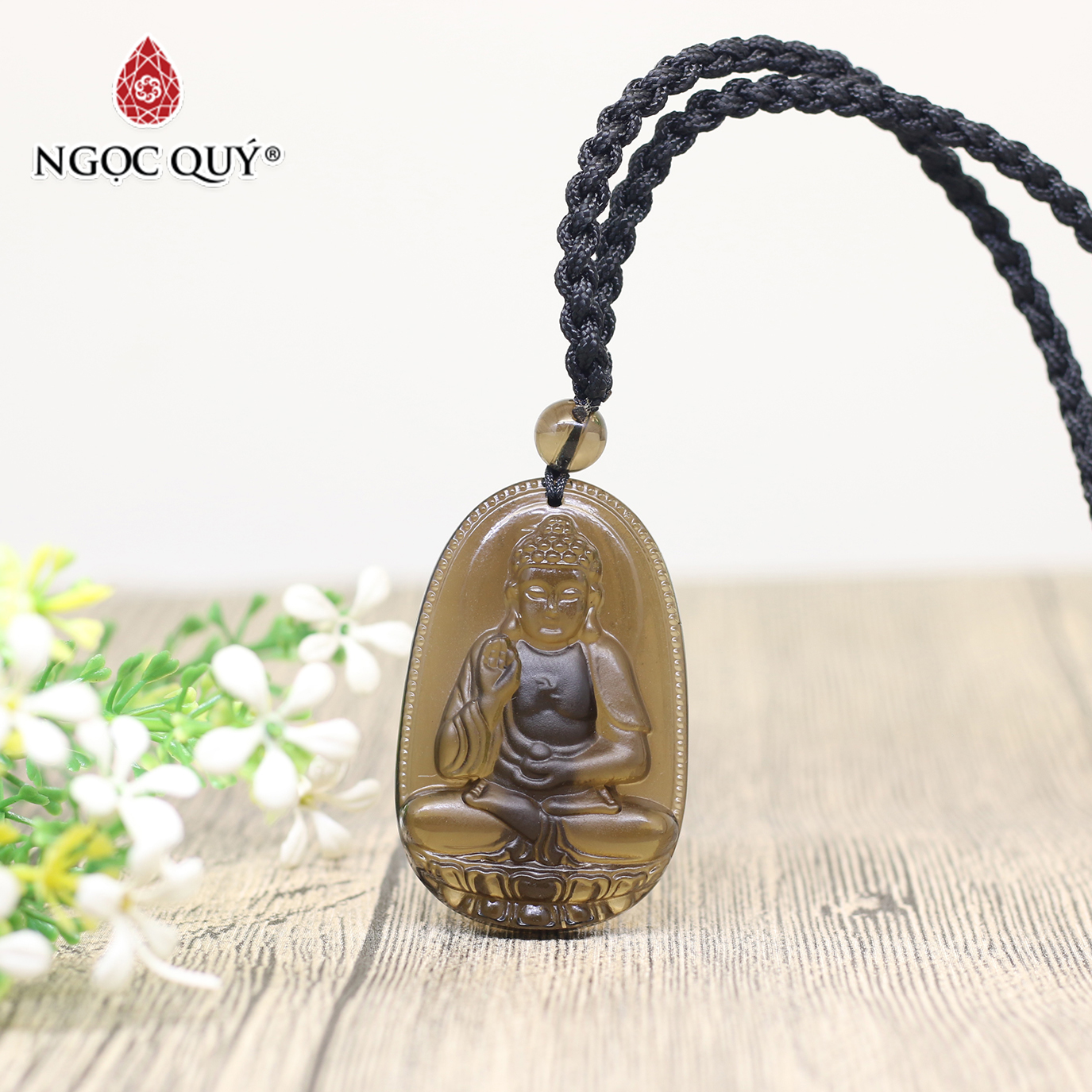 MẶT DÂY CHUYỀN PHẬT BẢN MỆNH ĐÁ THẠCH ANH KHÓI: