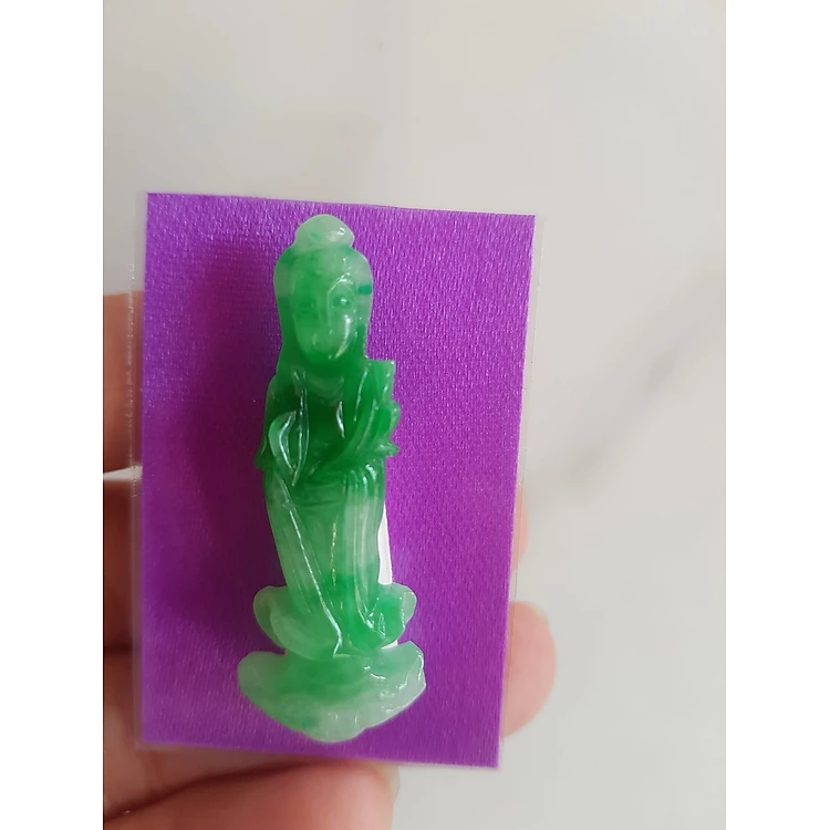 MẶT DÂY CHUYỀN PHẬT MẸ QUAN ÂM ĐỨNG MỚI ĐÁ CẨM THẠCH TỰ NHIÊN MÀU XANH NGỌC TRẮNG ĐỀU BÓNG BỌC VÀNG ĐEO ĐẸP Cao 43mmx15mmx4mm Ạ