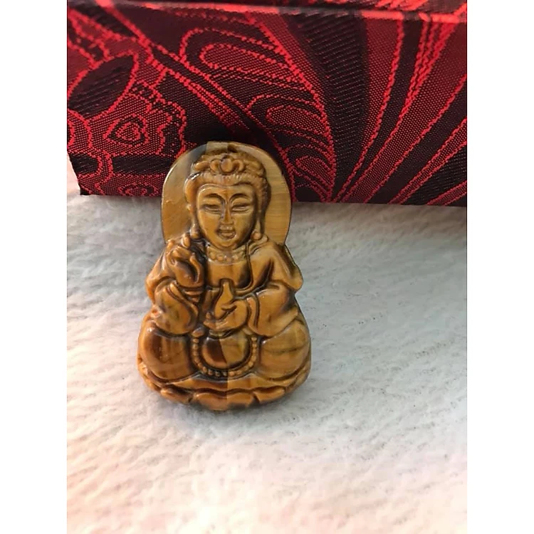 MẶT DÂY CHUYỀN PHẬT QUAN ÂM ĐÁ MẮT HỔ TỰ NHIÊN VÀNG NÂU