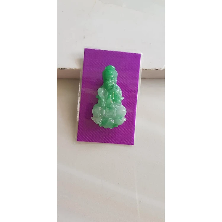 Mặt dây chuyền Phật Quan Âm Ngồi tay cầm bình nước cam lộ đá ngọc cẩm thạch tự nhiên đẹp Nữ size nhỏ Cao 36mm x N 20mm x S5mm Màu xanh ngọc trắng lý nhẹ nhàng đều bóng các Chị bọc vàng đeo đẹp ạ