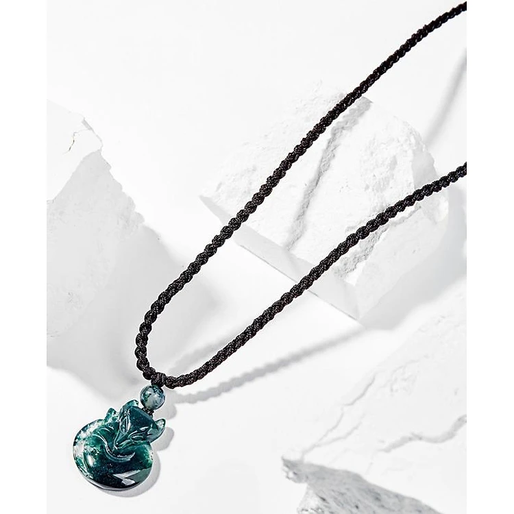 Mặt Dây Chuyền Phong Thủy Đá Băng Ngọc Thủy Tảo Cửu Vỹ Hồ Ly Mệnh Mộc, Hỏa Ngọc Quý Gemstones
