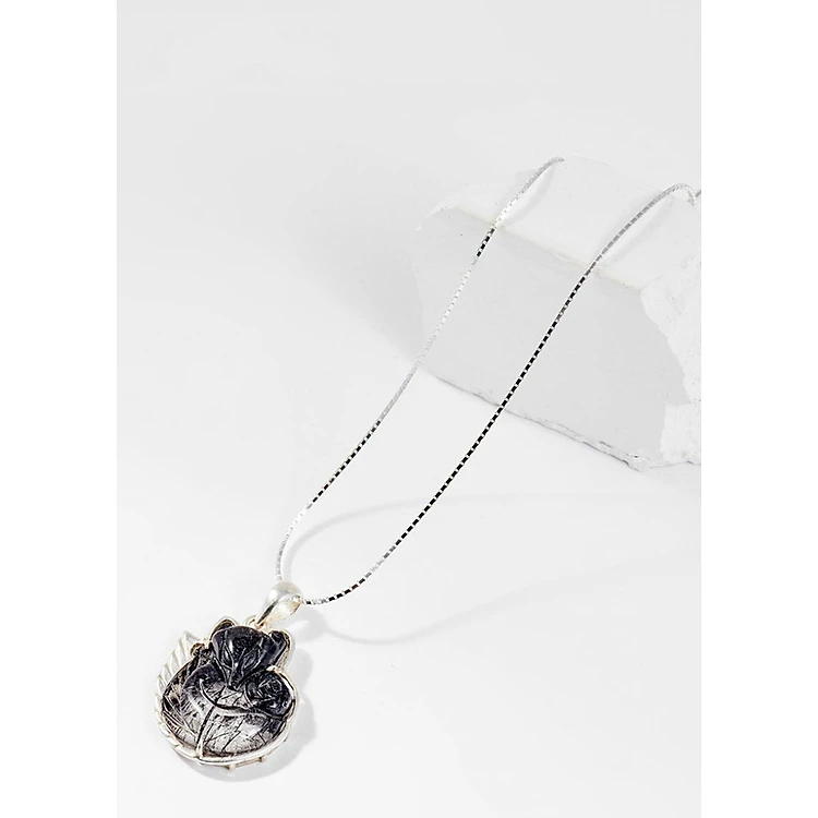 Mặt Dây Chuyền Phong Thủy Đá Thạch Anh Tóc Đen Cửu Vỹ Hồ Ly Tặng Dây Chuyền Bạc Mệnh Thủy, Mộc Ngọc Quý Gemstones