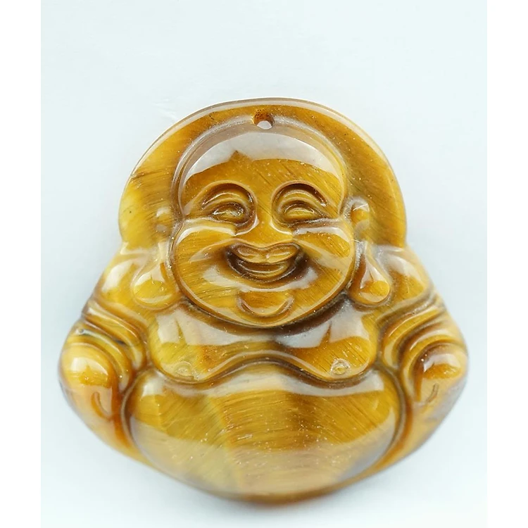 Mặt dây chuyền phong thủy Phật Di Lặc đá mắt hổ tự nhiên