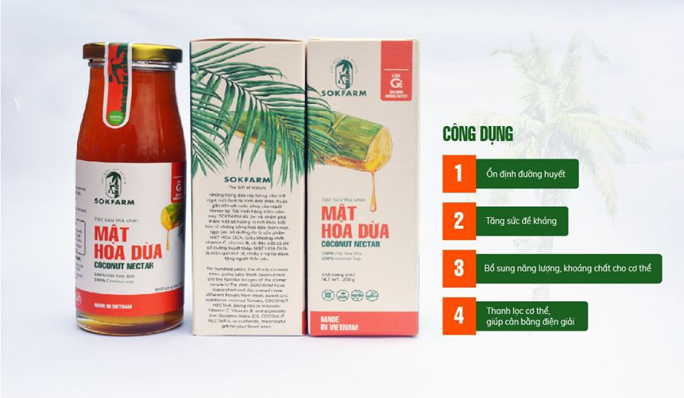 (trong đó có 6 acid amin thiết yếu), các dưỡng chất này đều rất cần thiết cho cơ thể con người. Và đặc biệt sản phẩm có chỉ số đường huyết thấp (đường mía là 100, đường dừa là < 45) và thuần thực vật.