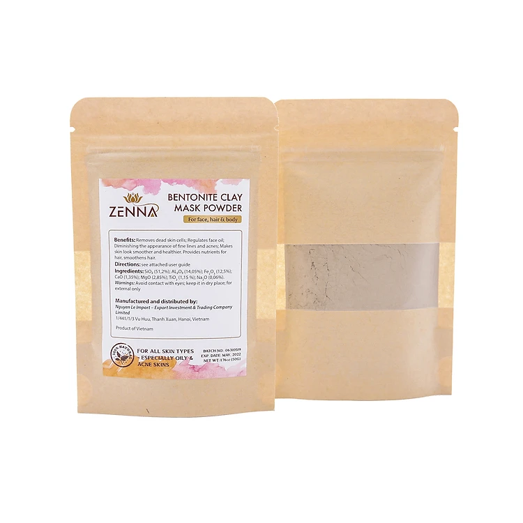 Mặt nạ bùn khoáng núi lửa kiểm soát dầu và mụn, thải độc tố, tái tạo da ZENNA Bentonite Clay 100g (2 túi 50g) - Set tiết kiệm - Phù hợp cho mọi loại da đặc biệt da dầu và mụn
