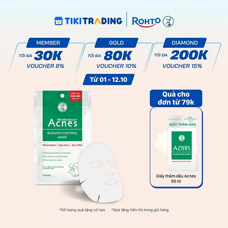 Mặt nạ chuyên biệt cho da mụn Acnes Blemish Control Mask (3 miếng/1 Gói/ 65ml)